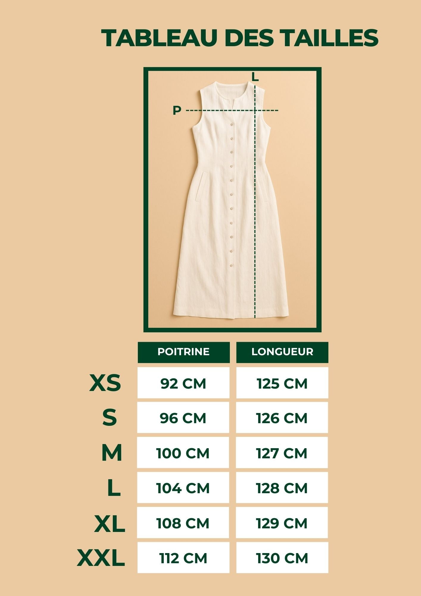 Le Robe Camille exprime une élégance essentielle, née de lignes pures et de proportions maîtrisées. Sa silhouette en ligne A, à la coupe régulière, épouse le corps avec naturel, tandis que la taille subtilement marquée structure la pièce avec discrétion. Le design sans manches et l’encolure ronde soulignent une esthétique intemporelle et épurée, contrastée par les boutons décoratifs et les finitions réalisées à la main, qui apportent caractère et raffinement à l’ensemble. Une robe pensée pour celles qui privilégient la sobriété sophistiquée et une présence silencieuse.